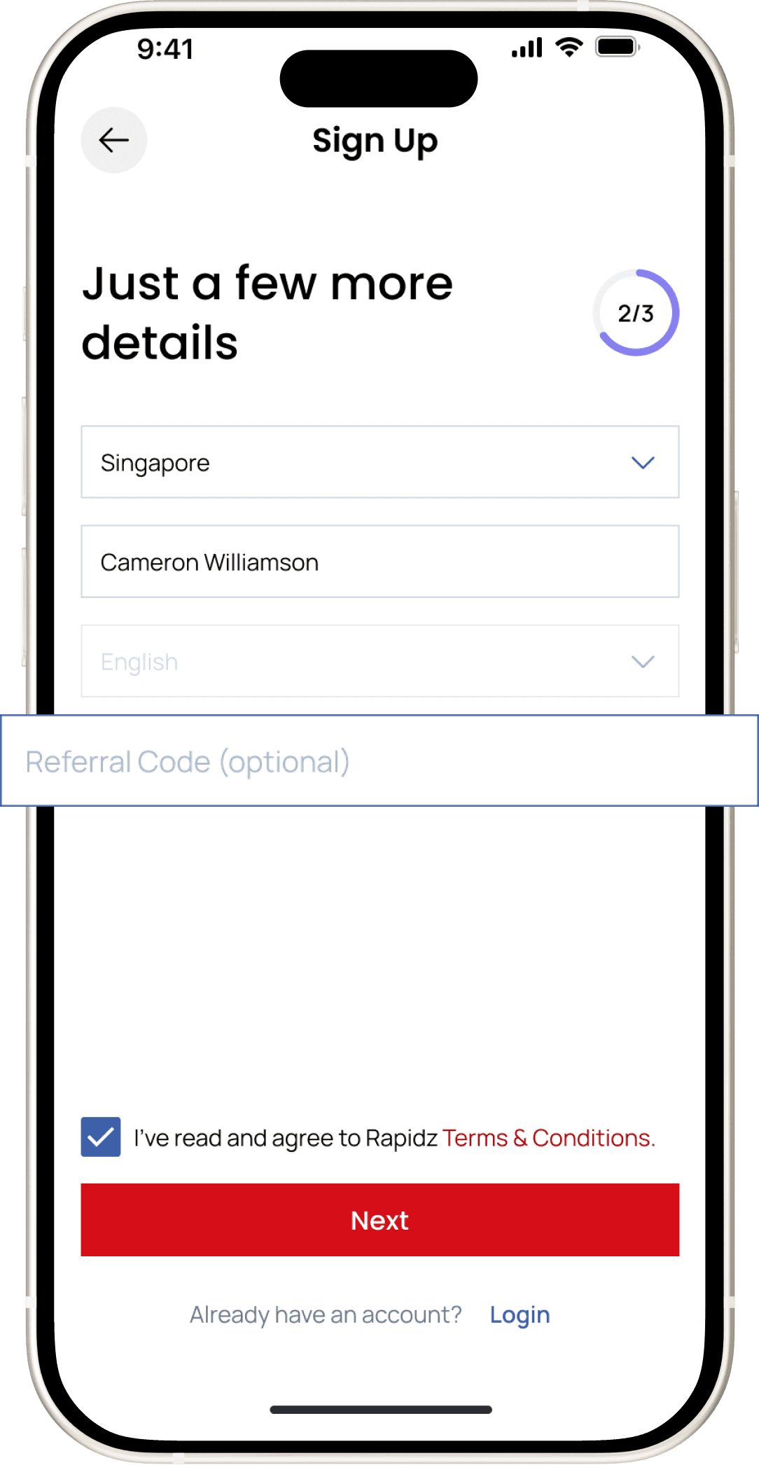 Your friend applies for a Rapidz Card